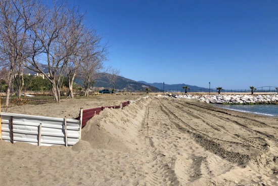 Durum Doğa Koruma ve Milli Parklar Şefliği’ne bildirilmiş olduğu halde kumsaldaki çalışmanın bugün biraz daha ilerlediğini gördük.