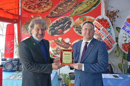 Konuşmalardan sonra, Anamur’da Saadet Partisi deyince ilk akla gelen, uzun yıllar ilçe başkanlığı yapan Menderes Bora’ya Genel Başkan Yardımcısı Av. Sinan Tekin bu güne kadara yaptığı hizmetlerin anısına teşekkür plaketi takdim etti.