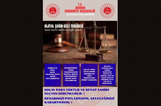 Anamur Cumhuriyet Başsavcılığı “Gençleri Dolandırıcılığa Karşı Uyarıyoruz: ‘IBAN’ınızı Kimseye Vermeyin!’”