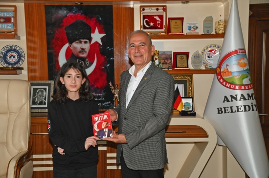 Anamur Belediye Başkanı Durmuş Deniz koltuğu Anamur Ortaokulu 6. sınıf öğrencisi Eda Lütfiye Onur’a devretti.