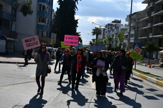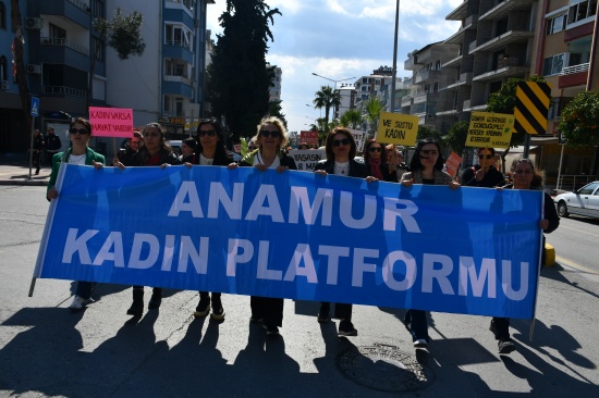 Anamur otobüs terminali yanında toplanan kadınlar, Atatürk bulvarından eski Cumhuriyet meydanına gelindi. Burada istiklal marşı ve saygı duruşundan sonra şiir okundu. Platformun ortak basın açıklamasını platform adına Sultan Güven okudu. Daha sonra gösteriler ve halaylar çekildi. Etkinlik, Muşurup sanat sokağında açılan fotoğraf ve resim sergisinden sonra Pazar yerinde üretici kadınlara eldiven dağıtımıyla sona erdi.