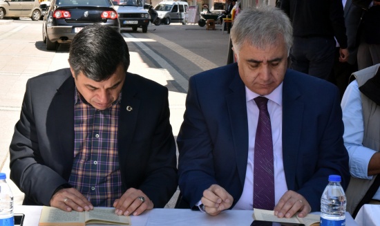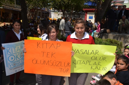 Daha sonra açış konuşmasını ?Neden Okumalıyız ?? diye başlayan İlçe Halk Kütüphanesi Müdürü Dursun Yağmur; “Kitaplar, ömür boyu yanı başımda elimin altındadır. Yaşlılığımda ve yalnızlığımda avuturlar beni. Sıkıntılı bir avareliğin baskısından kurtarır, hoşlanmadığım kişilerin havasından dilediğim zaman ayırıverirler beni. Fazla ağır basmadıkları, gücümü aşmadıkları zaman acılarımı törpülerler. Rahatımı kaçıran bir saplantıyı başımdan atmak için kitaplara başvurmaktan iyisi yoktur; hemen beni kendilerine çeker içimdekiler den uzaklaştırırlar? İnsan kitaptır ve ondan yoksun anlayıştaki insanlara acırım.