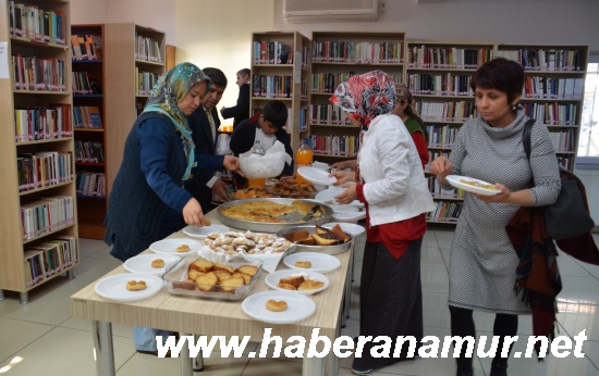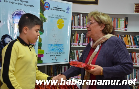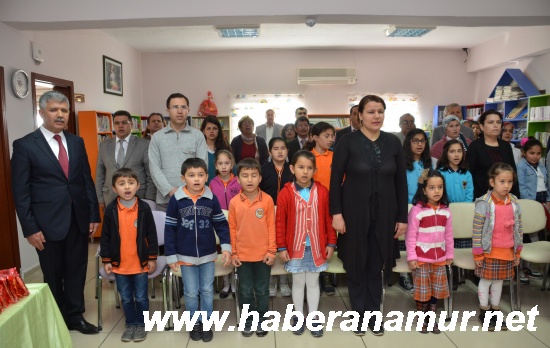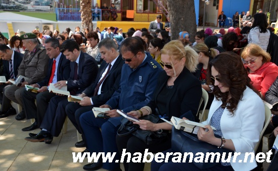 İlçe Halk Kütüphanesinde saygı duruşu ve istiklal marşının okunmasıyla başlayan törene, Anamur’da yaşayan eski Kütüphaneler Genel Müdürü Gökçin Yalçın, Okul Müdürleri, Çok kitap okuyanlar (çoğunluğu öğrenci) ve vatandaşlar katıldı.