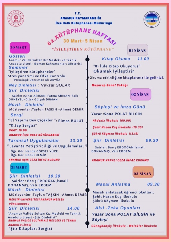 Ülkemizde 1964 yılından bu yana kutlanan Kütüphane Haftası’nın 62.’sini İyileştiren Kütüphane ana teması ile kutluyoruz.