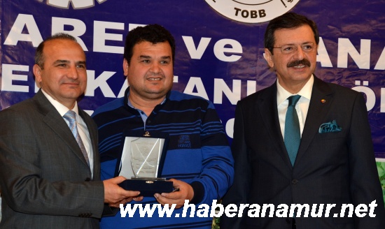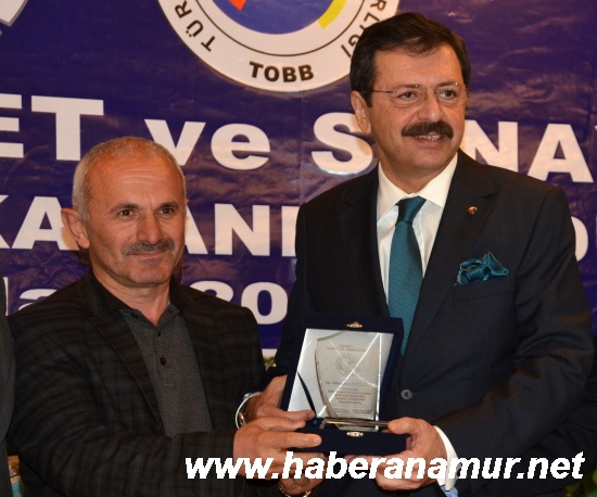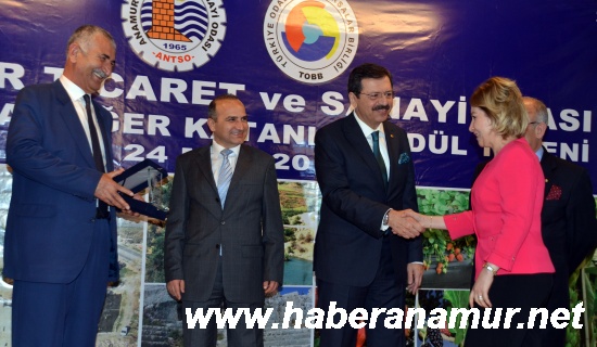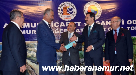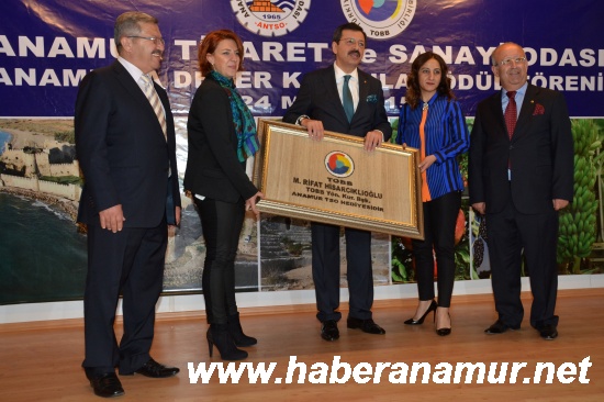 Anamur Ticaret ve Sanayi odası üyesi vergi rekortmenlerine plaketleri, Türkiye Odalar ve Borsalar Birliği başkanı M. Rıfat Hisarcıklıoğlu tarafından verildi.