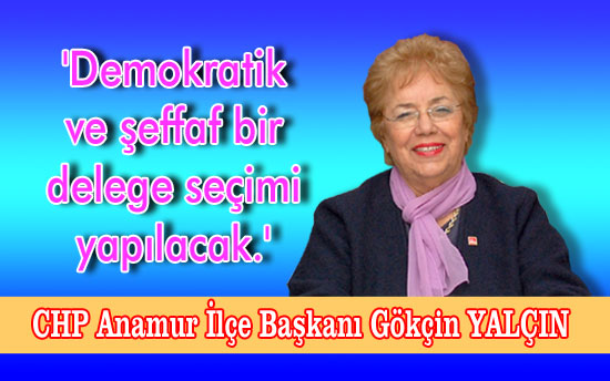 Partiyi gruplaşmalardan, kırgınlıklardan arındırarak yerel seçimi alacak, çalışkan, herkesi kucaklayan bir ilçe yönetimi çıkarmayı amaçladıklarını ifade eden Yalçın, ?Böyle bir yönetim, üyelerimizin özgür iradeleriyle seçeceği delegeler tarafından seçilecektir. İlkeli, partisini büyütmeyi, özgürleştirmeyi isteyen üyelerimizden isteyenlerin delege olmasını, üyelerimizin de bu çizgideki delegelere oy vermelerini istiyoruz, Bunun parti ve Anamur’umuzun yararına olacağına inanıyoruz? dedi.