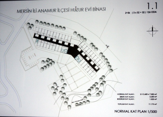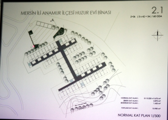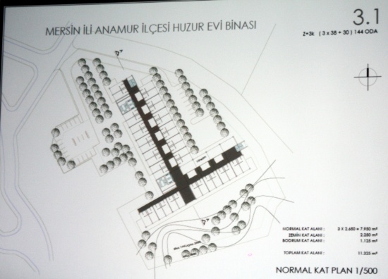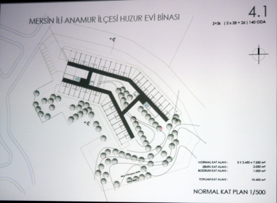 Huzurevi’nin proje taslağını yapan Anamurlu Prof. Dr. Ha-san Şener ise bu taslakları gös-tererek bilgi verdi. Huzurevi’nin yapılacağı alanın 8 bin 400 metrekare olacağını ifade eden Şener, “Bu alan üstüne her türlü ihtiyaca cevap verebilecek şekilde 100 ile 150 arasında odası olan, zemin artı iki katlı 4 ayrı proje taslağı hazırladık. İşletme modeli, Huzurevi bünyesinde bulunacak birimler ve genişleme imkanı gibi değişik konular netleştiğinde proje son halini alacak. Uygulama projesi, bu taslaklardan biri ya da hepsinin bir sentezi olabilir. Çeşitli fikirler ve teknik konular ele alınarak uygulama projesini oluşturacağız. İşletme konusunda senaryoların netleşmesini bekleyeceğiz. İleride bu çalışmalar tamamlandığında kesin projeyi burada sizlere sunacağız. Bu iş, Anamurlu olmam nedeniyle benim için sadece teknik bir iş değil, duygusal olarak da bu işin gerçekleşmesini çok istiyorum” şeklinde konuştu.