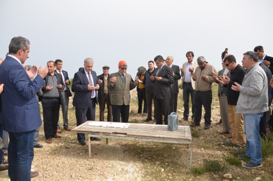 Konuşmaların ardından Müftü Zeynel Abidin Çınar tarafından dua yapıldı ve kurban kesildi. Protokol üyeleri, butona basarak temel atma işlemini başlattı.