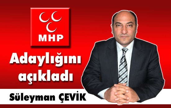 MHP eski İl Genel Meclisi üyesi Süleyman Çevik, 20 Ocak 2012 tarihinde yapılacak olan MHP İlçe Kongresi?nde İlçe Başkanlığına aday olduğunu açıkladı.
