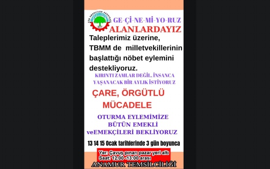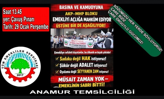 Emeklilerin büyük bölümü BES-AR araştırmasına göre açlık sınırının yarısından az aylık alıyor. Ortalama emekli aylığı asgari ücretin 4 bin lira altındadır Temel gıda, kira ve enerji giderleri hızla artmaktadır. Emekli maaşları yıllardır sistemli biçimde erimektedir. Bayram ikramiyeleri emeklilerle alay eder düzeye düşmüştür. Emekliler bu ülkenin yükü değildir. Emekliler bu ülkenin yıllarca çalışarak bu ülkenin zenginliğini üreten insanlarıdır. Bugün talep ettiğimiz şey emeğimizin ve hakkımızın karşılığıdır.